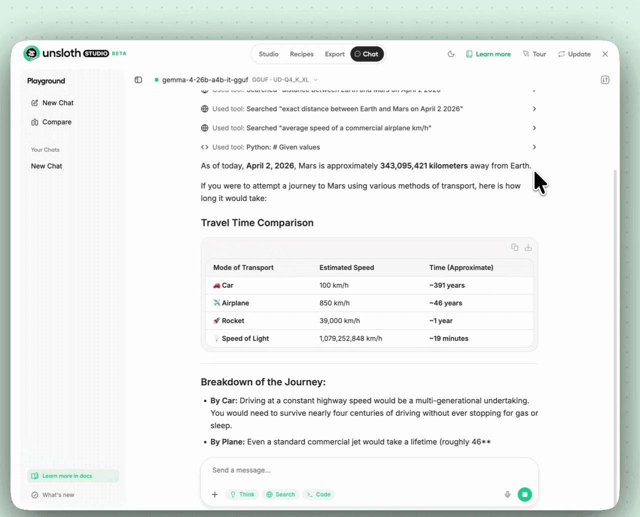 The fastest way to test all of this before setting up locally is the free Colab notebook Unsloth published. Open it here, run the cells, and you’ll have Gemma 4 responding in your browser within minutes, no GPU required on your end. Once you know which variant you want, then do the local install.